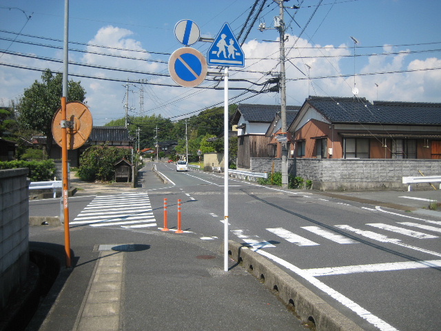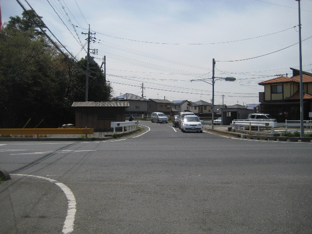 先の市道岩鼻浜田線を経由した車も流入するので、この交差点を出入りする車は断続的に結構ある。県道側の歩行者向け信号機がないので変わるタイミングが分からず、県道を走る向きには不意に足止めを喰らうことがあるちょっと嫌な信号機だ。