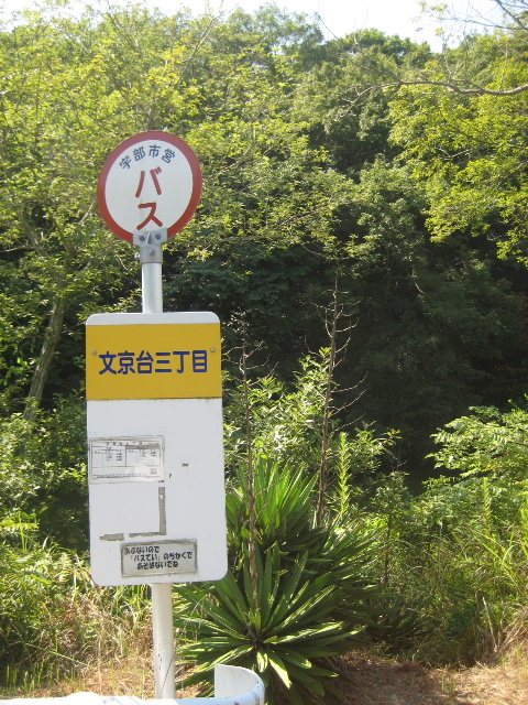 また、降って湧いたように溜め池の傍でバス停に出会う。文京台三丁目バス停である。