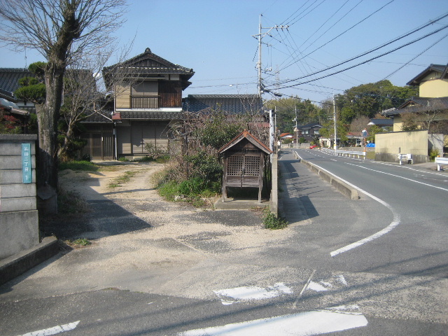 十字路の角で大変目立つ場所である。本路線で掲載済みの写真を見ると、この祠が写っている。しかし今までの市道レポート向けの撮影ではいずれも見落とされていた。