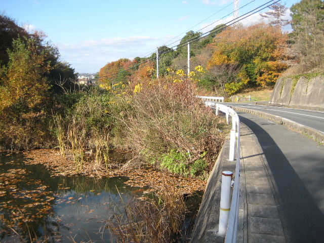 由利野峠を過ぎて下り坂に入った先、文京台三丁目バス停の横に小さな溜め池がある。