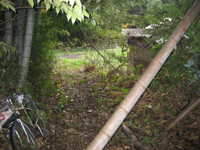 アスファルトの道なら乗って進めなくても押し歩きはずっと容易だ。何よりも生活圏へ舞い戻ってきたことが保証される。どれほど続くとも分からない竹藪の道を延々自転車押し歩き(と言うか担ぎ歩き)してきたのでかなりホッとした。