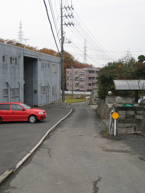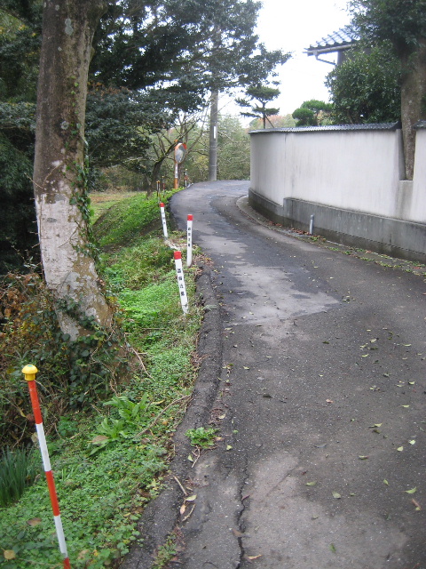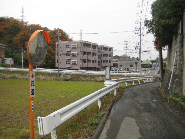 既によく知っている市道へ通じる前に本路線はここで一旦幅が狭くなる。