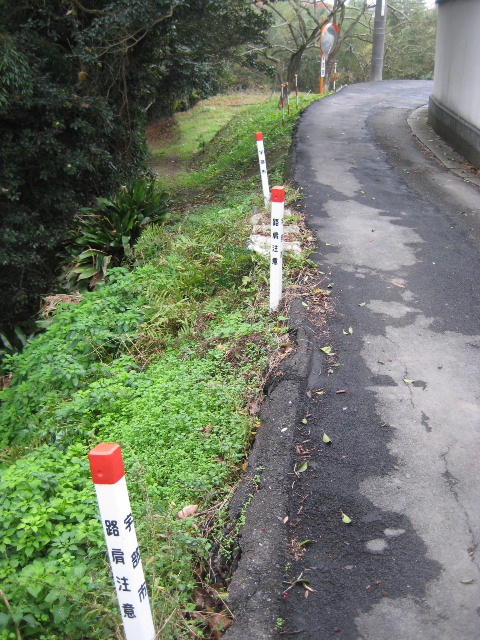 ここにも宇部市の「路肩注意」の表示がズラッと並んでいた。