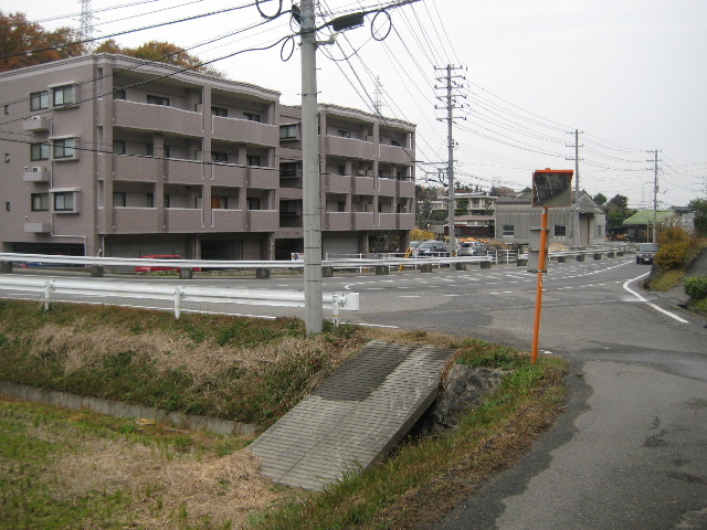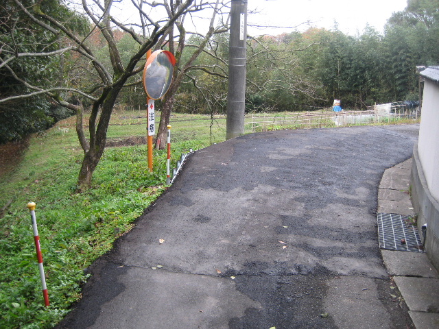 邪魔にならないよう道路の外にカーブミラーが立っているのだが…これって異常に背丈が低いのでは…^^;