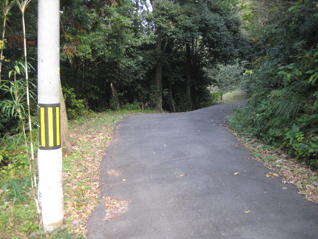 終点から本路線を辿ったとき右側に位置していた沢が高度を上げて市道の高さまで追いついた。この近辺の最高地点らしく道なりも平坦になっている。