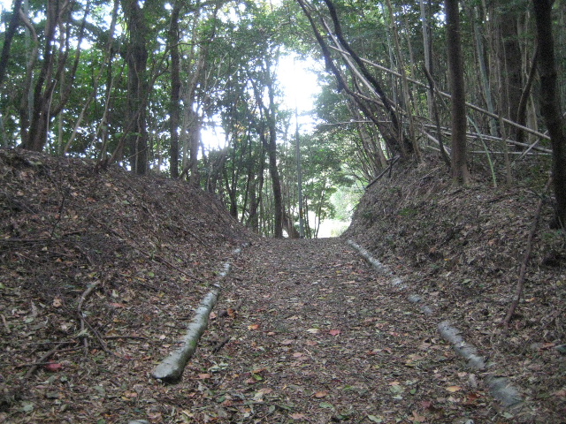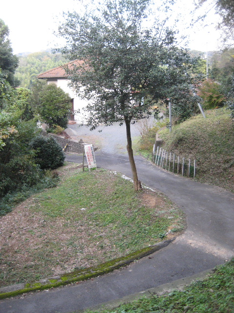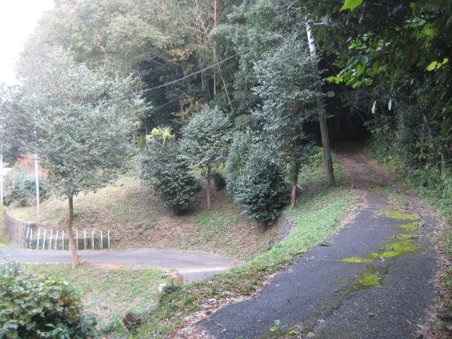 中山の方へ降りていく道とされる市道尾崎大笠線の分岐点。