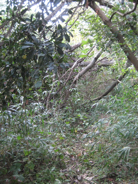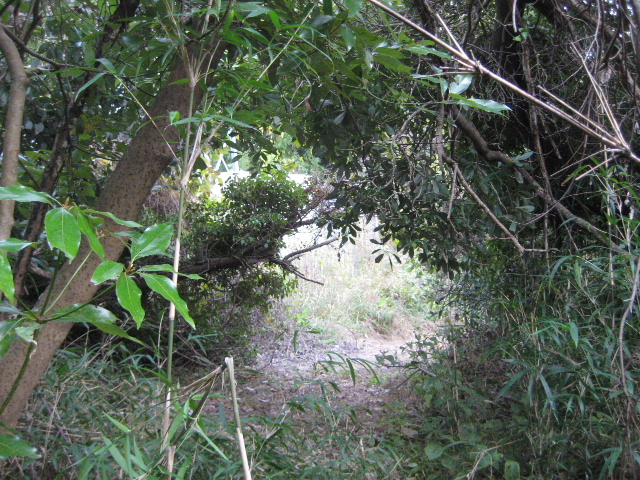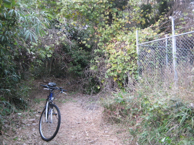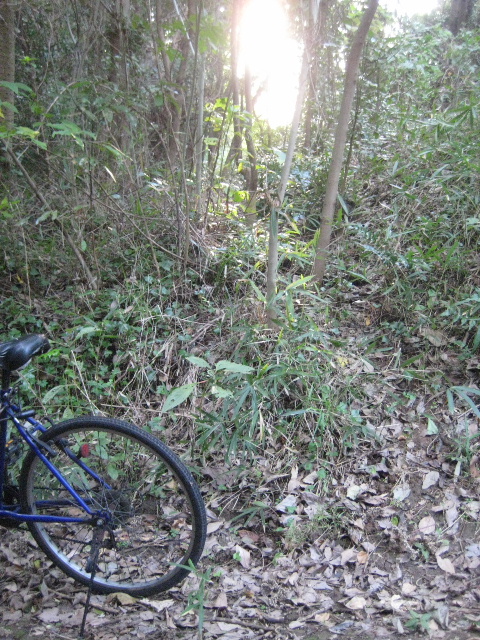 既に道の形は殆ど分からない。自転車を後方へ待機させ、今まで進んできた方向を変えず真っ直ぐ藪の中へ突っ込んだ。