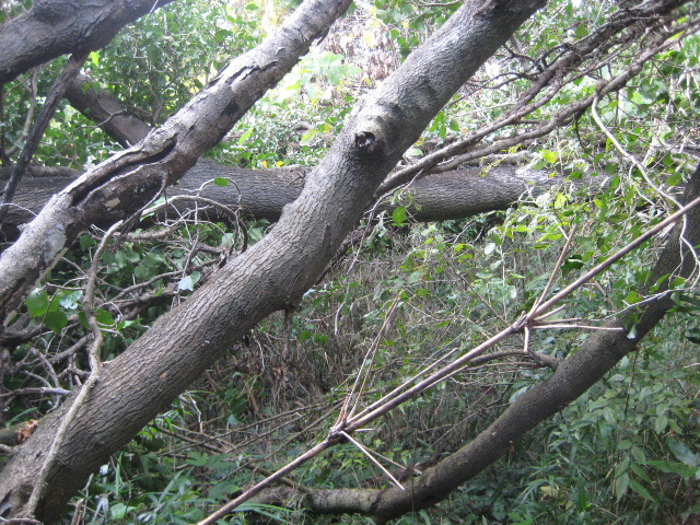 かなり太い樹木が数本倒れかかって道を塞いでいた。[1]こんな状況なら歩こうとここを訪れた人でも引き返すだろう。