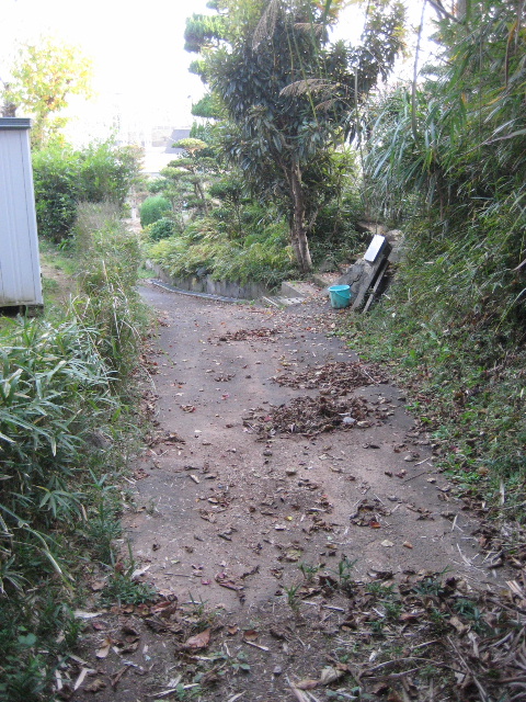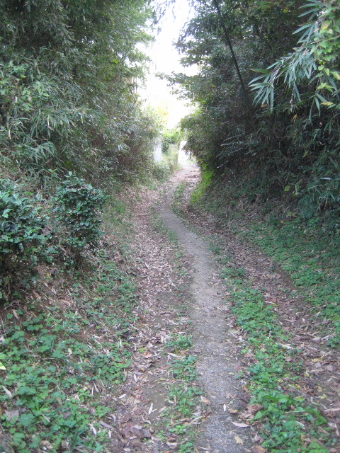 ぬかるんだ天候でも足元が滑らないように中央をコンクリートで固めた道である。随分と昔、通る人が雨でも足元が不安にならないよう拵えたのだろう。