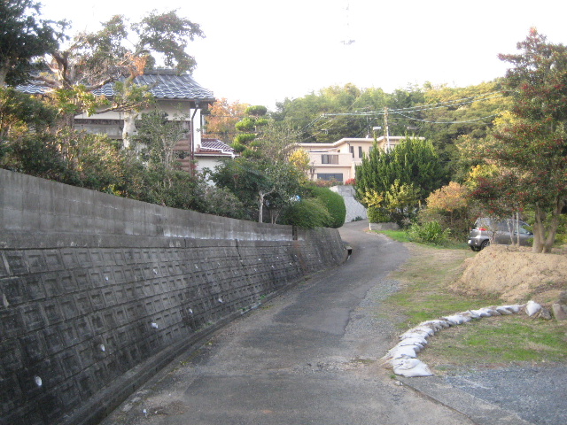 起点から辿れば一番山側に位置する民家に出会い、それから道がアスファルト舗装路となる。