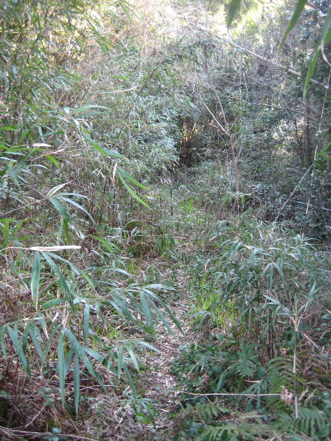 この先は一面笹藪の海。まったく道の形が遺っていない。