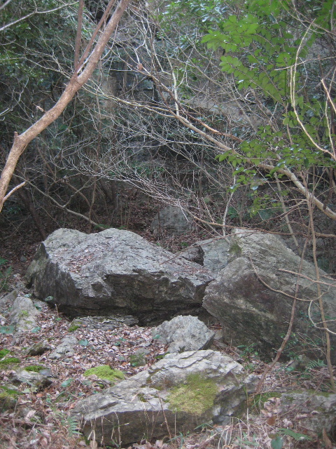 道中はずっと山の斜面に沿って荒れた道と水路が続いているだけで、こんな岩場みたいな場所があったか全く思い出せないでいた。