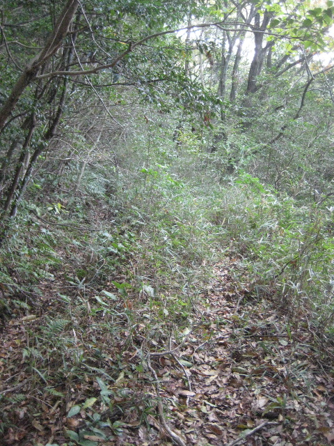 踏み跡は明瞭だし起点側みたいに藪で塞がれている様子はない。おとなしめの山道だ。