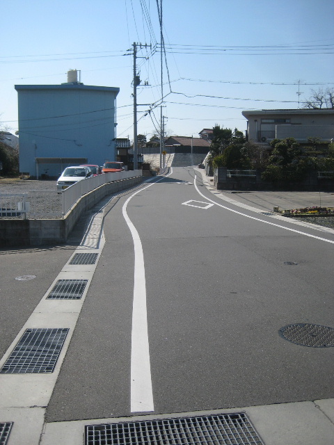 1. 計画線では工学部通りを東へ直線的に延伸したルートとなっている。しかし現地の舗装は民家の手前までで停まっている。