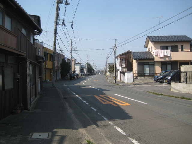 郵便局を過ぎると、同じ対面交通ながら全体的に幅が広く感じられる。線形は元から直線だったが両側に幅広の歩道を設置している。いつ頃だったか分からないが割と最近の整備だったように思う。
