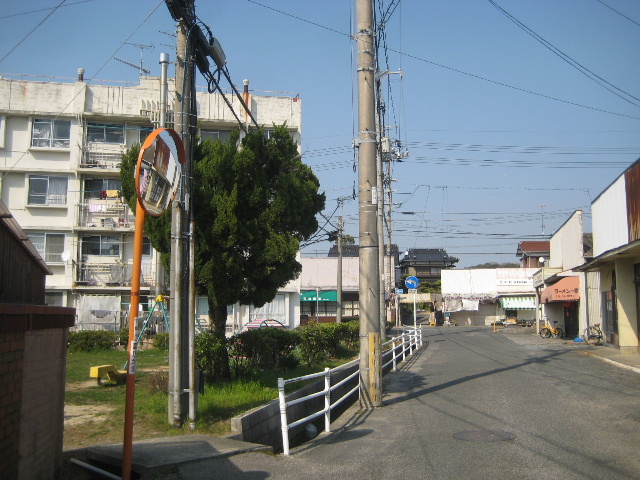 前方は市道平原厚東川線で、岩鼻駅前を通る昔からの道である。