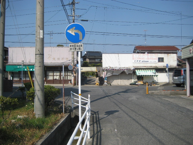 右側僅かばかり見えている路地は市道居能2号線である。成り立ちは不明だが本路線よりも歴史は恐らく古い。