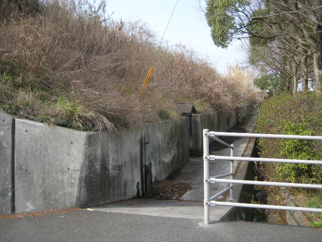 コンクリートで均した犬走のような道で、水路を隔てて藤山北児童公園の敷地になっている。