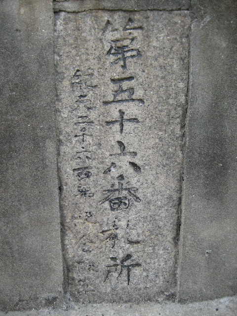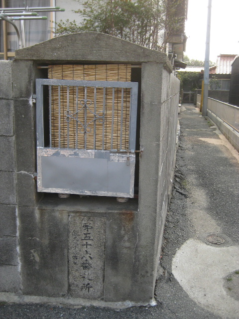 台座コンクリート部分に「第五十六番札所」という表示がみられる。