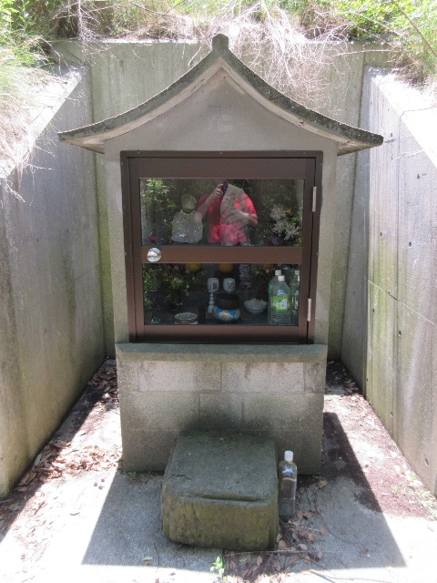 法尻がコンクリート壁になっていて、祠は移動させずコンクリート壁で巻くように囲まれていた。