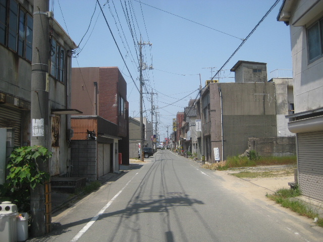 道の両側は割と昔からの個人商店や民家が並ぶ。飛び抜けて新しい住宅がない代わりに極めて古風という家もない。