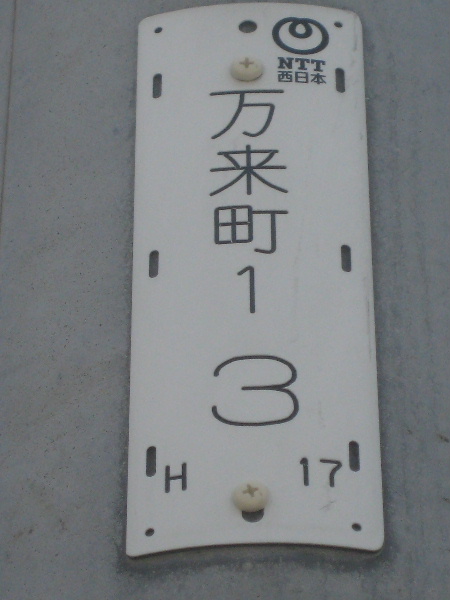 プレートは平成17年の年号が見えているので、割と最近交換されていながらも電話線ないしは電線を管理する上で今でも万来町を路線名として使っているらしい。