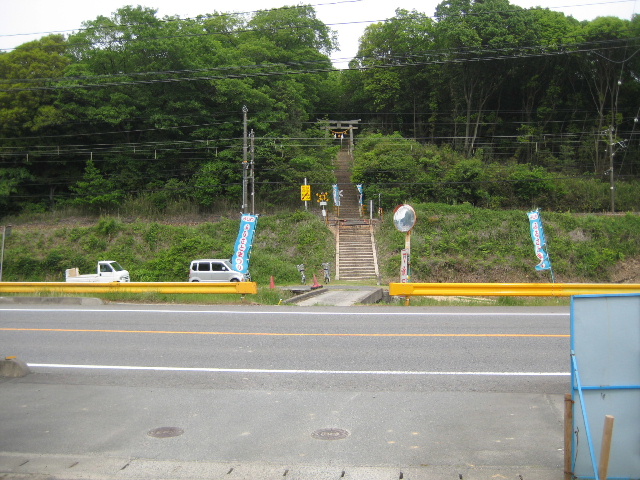 この日(13日)はちょうど善和八幡宮の例祭で、善和集落から最も近い参道になるこの場所にも幟が立ち、祭りに繰り出す子どもたちの自転車が石段の前に停まっていた。