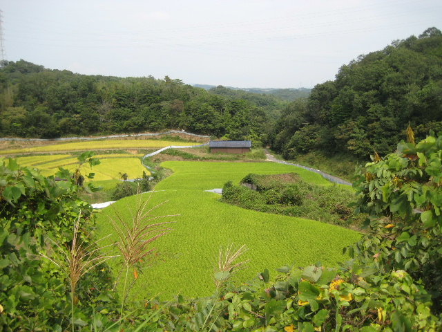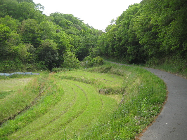 以下の2枚は3年前の秋口、県道西岐波吉見線を走破したときこの市道を見下ろした写真である。
