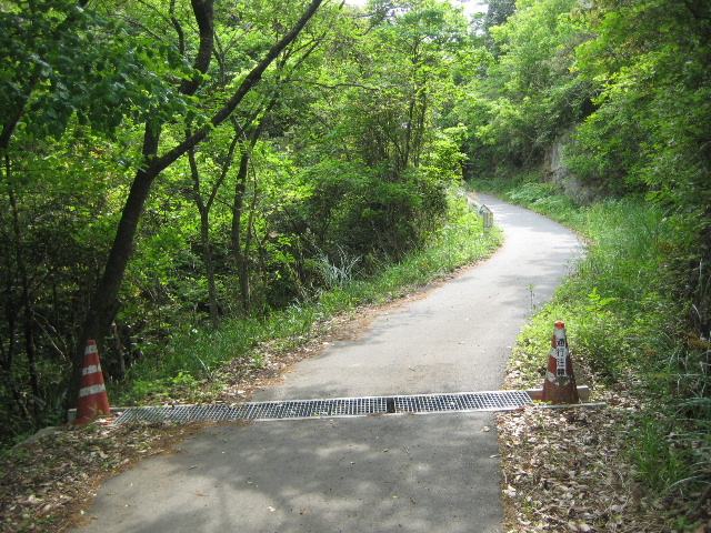 県道横断のボックスをくぐった先は未舗装になっているというだけで、同じ幅の道は更に奥まで続いている。完全な行き止まりとなっている訳ではない。ただ、この先は市道ではない。地区道もしくは私道になる。登山道の一部を兼ねているので恐らく私道ではないと思われるが、進攻には自己責任が求められそうだ。