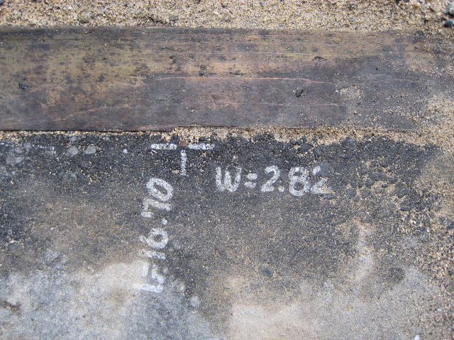 出来形検査の折には検査官が立ち会い、メジャーやスケールを当てて所定の幅員や延長が仕様書通りになっているかチェックする。
