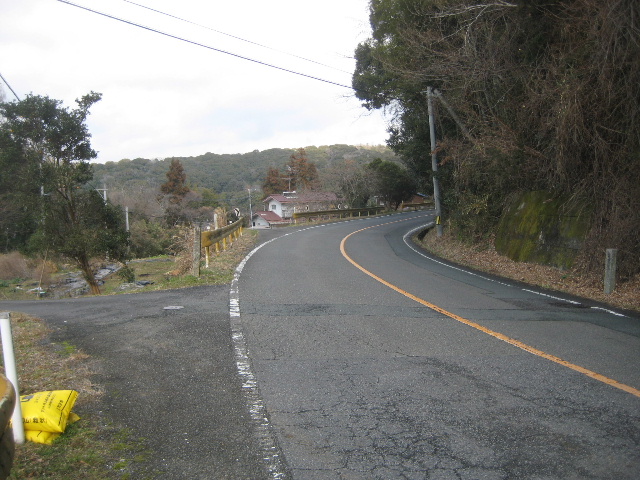 市道はその先更に下っていく。アスファルト舗装路に傷みが少ない。エッジ部分がまだ綺麗で、割と最近舗装し替えたようだ。