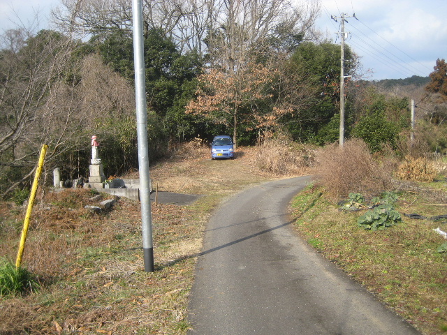 下ってすぐの所に車が置ける平場があり、その傍らに石仏が祀られていた。