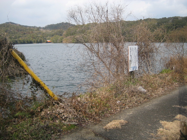 市道が湖面に没する位置までは地図の通りだが、そこから先は小野湖のどの辺りで左へ曲がり、対岸のどのあたりに接続されるか等は全く不明である。また、当たり前だが湖上を渡る部分に橋などなく、正確に辿るためにはボートが必須になる。