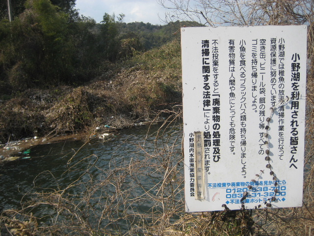 「小野湖を利用される皆さんへ」の案内板。