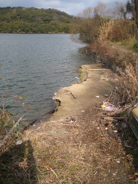 アスファルトの路面はコンクリート打ちっ放しに変わり、しかも間断なく打ち寄せる湖水によって削り取られていた。