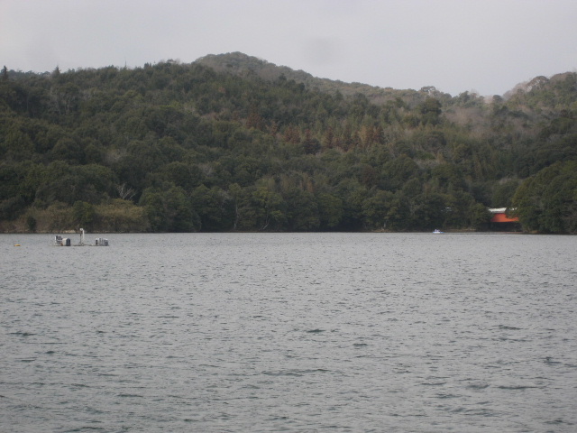 そこから離れて小野湖の右岸を写す。