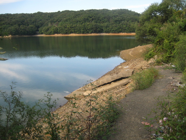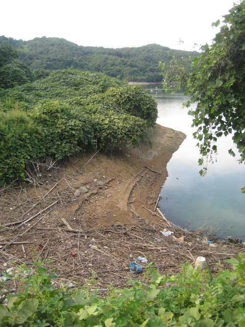 水位低下に伴い水質もかなり悪くなり始めていて、表面にアオコが浮いて周囲に異臭を放っていた。