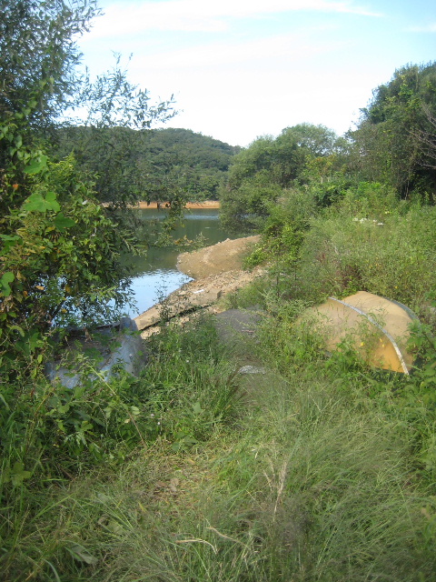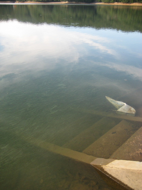 右側の石積みを進めば、あるいは上から眺めることはできたかも知れない。しかし水深があるなら階段の様子は前回以下の状況しか分からないし、何よりも石積みの上は私有地という事情があった。こういう状況なので