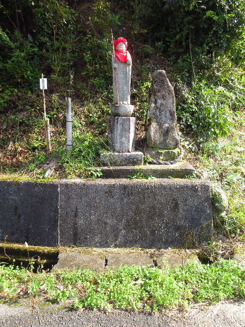 右への分岐は市道前原線である。比較的近年認定市道となった路線だが、分岐路にこの像があるということは古くからある道なのかも知れない。