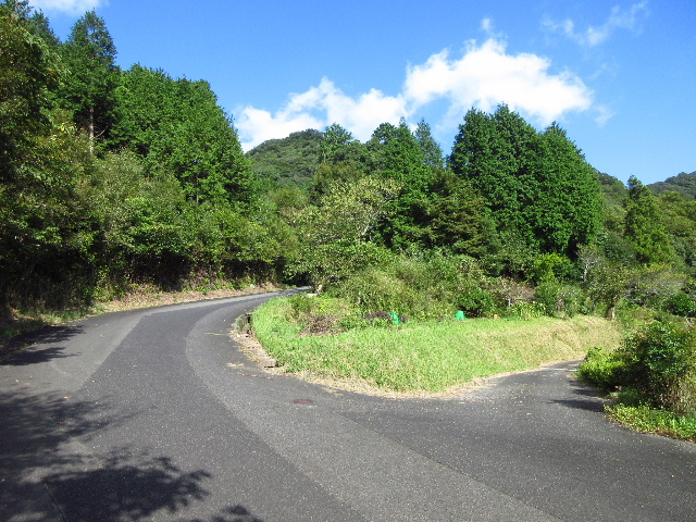 ここから先がほぼ単独の古道で往来が少ないせいか、舗装はされているものの車が頻繁に通る形跡が感じられない。路上には枯れ葉が少し溜まっていた。