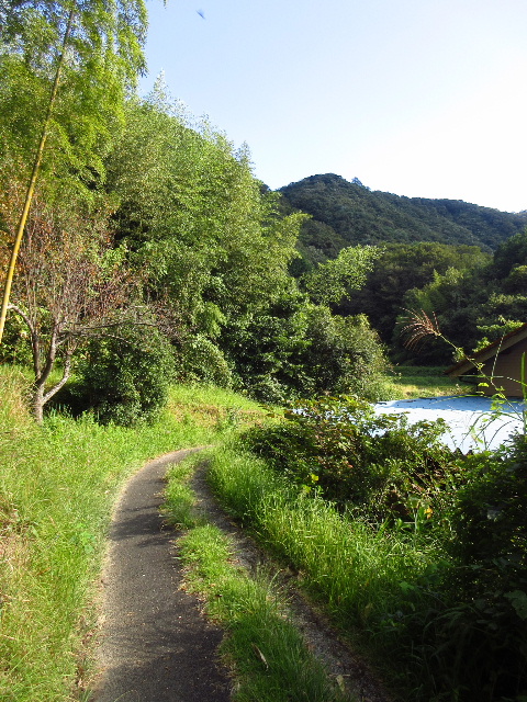 これから進む昔ながらの道は、この美麗な山の裏側を回り込んで峠越えしているようである。