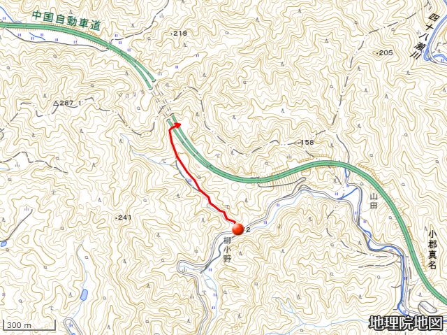 )終点は中国自動車道のボックスカルバートをくぐった先(大まかな位置