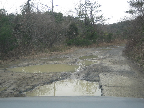 水溜まりだらけの酷い道に入ったところ。
