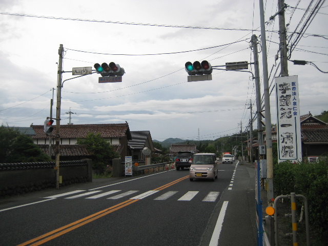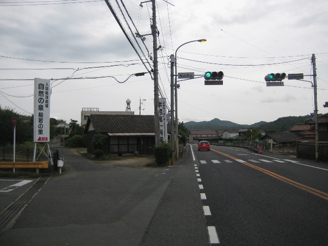 国道2号のここを通ったことがない方でも上の地図さえあればポイントされた場所はまず見逃すことはない。特に西の方から国道を走るなら、右手に宇部丸山ダムの堰堤がチラッと見えて最初に出会う信号機つきの三叉路だ。しかも信号機には「丸山ダム」の文字が出ている。