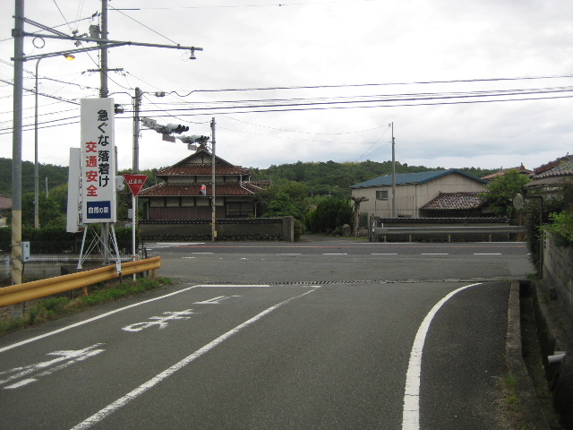 斜め左に伸びていく狭い道は市道木田線で、いわゆる山陽道(西国街道)の一部である。