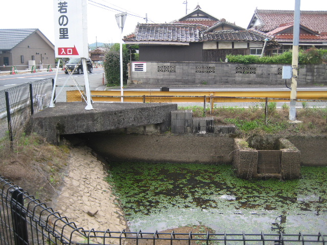 しかし溜め池自体もかなり古くからあったもののように見える。泥を被っている護岸部分は、張りブロックではなく、現場打ちの均しコンクリートに栗石を埋め込んだような構造になっていた。