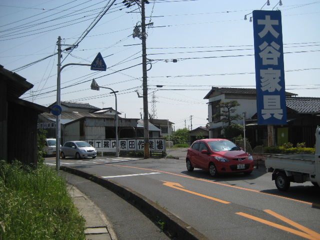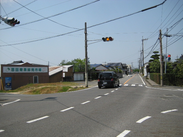 看板を過ぎてすぐに国道190号に行き当たる。ここが恩田交差点である。