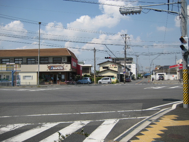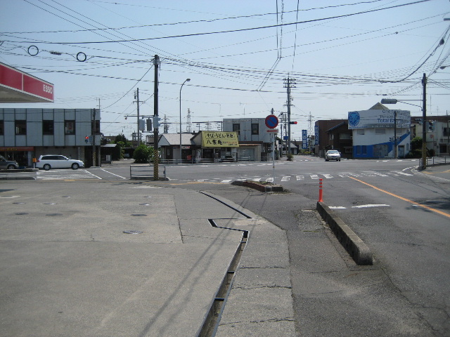 最初の変形交差点に向かうまで、市道は直線的に進む。
