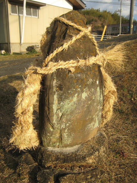 約一週間後、厚南地区を訪れた帰りに浜田を通ったとき、庚申塚に新しい注連縄が被せられていることに気付いた。