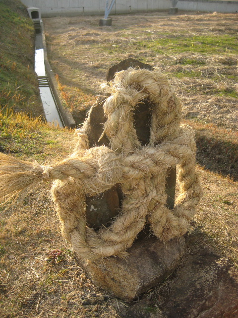 沖の旦橋の右岸にも「幸神塚」があり、そちらも同様に注連縄が被せられていた。